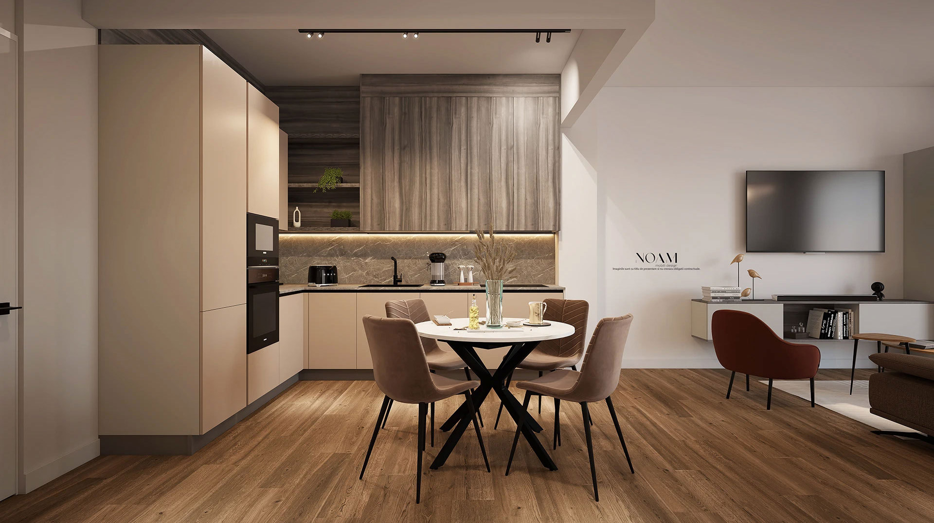 Monarc Development gestionează managementul proprietăților, brandingul și procesul de vânzări, iar NOAM Mobili Design se ocupă de mobilarea completă a unităților, după preferințele viitorilor proprietari.